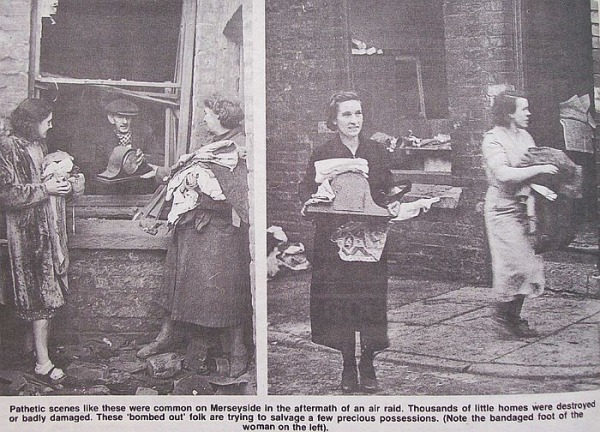 Working class residential areas over a wide area presented a poignant sight, as humble families stood by their furniture and small pieces of personal belongings preparatory to evacuating their standing, but, uninhabitable homes, but, they bore their troubles smilingly, and mobile canteens were quickly on the scene to provide hot drinks prior to their dispersal to various reception and rest centres. Other houses were completely demolished and burnt out, but in several districts considering the severity of the raid and the extent of damage to property the casualties were small.