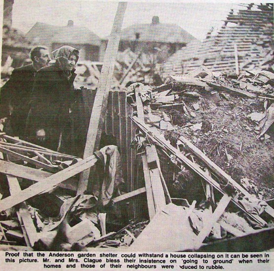In one suburban residential area an underground shelter received a direct hit, although there were some fatalities many of the occupants, fortunately not as numerous as the previous occasion were rescued. Women from nearby houses arrived on the scene with shovels and help with the rescue work pending the arrival of the rescue party. Many of the houses in the surrounding areas also suffered direct hits from high explosives causing some fatalities, but residents in their Anderson shelters generally escaped with little more than a shaking and were quickly rescued by rescue parties and neighbours.