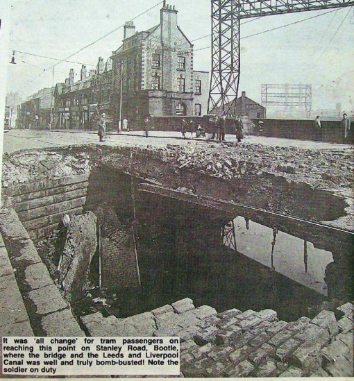 In a shopping centre a number of business premises, a post office and public library were partially demolished, not a in 100yds away had a window intact. The blast turned a corporation tram car on its side, but none of the passengers were injured.