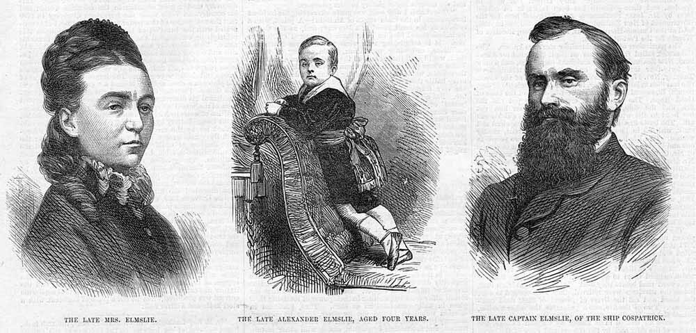 At the office of the owners today [Monday], telegram received this morning. The three survivors, Henry M'DONALD and two seamen, who were picked up on the 27th Nov, state that the ship was burned on the 10th, the total number of souls on board was 477, and there is little hope any others have survived, as the three saved were not picked up until the 8th day after the catastrophe. Captain ELMALIE, who commanded the ship, possessed great experience, having on the previous voyage taken the ship to New Zealand and back. The three survivors were landed at Madeira and are now on their passage home in the mail steamer NYANZA, which will probably arrive at Plymouth on Thursday next, and until that time little can be known about the cause of the disaster. The vessel carried chiefly Government emigrants, 424 in number, and every precaution had been taken to insure her safety from fire or collision. The only passengers besides the Government emigrants were Dr CADLE and four cabin passengers. Messers Shaw Saville and Co state that the COSPATRICK was a large emigrant ship of 1200 tons, registered at Lloyd's and classed A1 up to 1883. She was despatched by the firm who are principal owners, and who underwrite their own risk on the value. They have sent to the colony of New Zealand, 74 vessels this year, the COSPATRICK being one of the last, many of them conveying emigrants for the New Zealand Government.