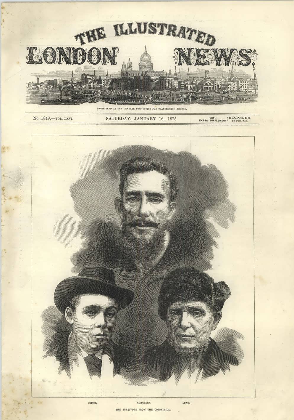 The following from St Helena, has been received at Lloyd's in a telegram, dated Madeira, Dec 25th 5.40 pm, "The COSPATRICK, from London to Auckland with passengers, took fire at sea, and was totally destroyed on the 7th Nov in lat 37 S. lon 12E. The second mate and two of the crew saved, passengers and remainder of crew supposed to be drowned. The news was brought on from St Helena by the mail steamer NYANZA, which sailed at Madeira on Christmas Day, on her way to Southampton.