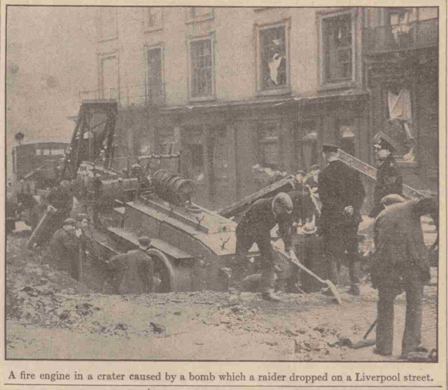 Liverpool Daily Post Dec 23rd 1940. Fire Engine in crater caused by a bomb