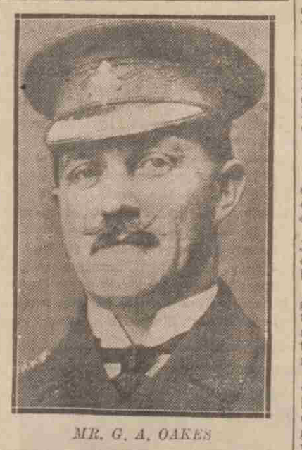 He holds the Kings Police Medal for services rendered at the fire at Morecambe Shell Factory in October 1917 in respect of which Mr CHURCHILL sent a wire expressing his admiration of the work done by Mr OAKES and the men under him. He also received the Royal Humane Society testimonial for rescuing a fireman from a burning ship in the Brunswick Dock during the same month, and his bravery in saving a woman from the Mersey 7 years afterwards was likewise recognised.