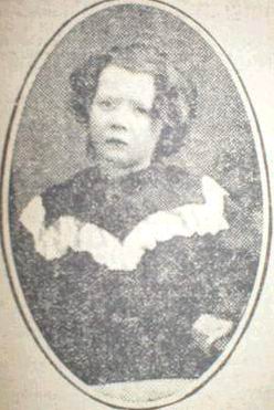 The girl has dark brown hair, blue eyes, a prominent nose and fresh complexion and when she was last seen was dressed in a black shirt worn at the sleeves, blue pinafore, black velvet bonnet with black strings, black stockings and laces boots.