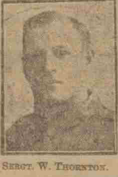 Mrs W. THORNTON of 24 Gilman Street has received notification of the death of her husband Sergeant Walter THORNTON, the Royal Sussex Regiment, who died of wounds in France. Sergeant W. THORNTON was a much valued member of the Liverpool City Police Band and the police Minstrel Troupe. He had served 12 years with his regiment in India.