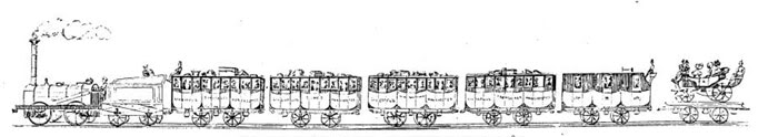 In consequence of the notice given that the Directors of the Railway were to visit Manchester on Monday morning a great number of persons assembled at the railway works, to see them take their departure. At 8.45am the directors consisting of Charles LAWRENCE, John MOSS, Joseph SANDERS, R. GLADSTONE, W. ROTHERHAM, R. HARRISON, H. EARLE, James BOURNE, D. HODGSON, and W. W. CURRIE Esq'rs, and Henry BOOTH Esq, the treasurer, took their seats in two of the new coaches provided for them, in which were also, Charles TAYLEUR Esq, John CROPPER, Jun, Esq etc, and after passing through the small tunnel, seven carriages laden with stone were attached to the engine. The weight of the two coaches with passengers was about 5 tons, 7 stone waggons, 27 tons, Engine, tender and water, 7 tons. gross weight 39 tons.