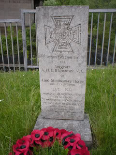 The burial service was read by Rev William BANNISTER, in the chapel in the cemetery, and the coffin bourne to the grave by 4 buglers, 3 vollies were fired over the grave.