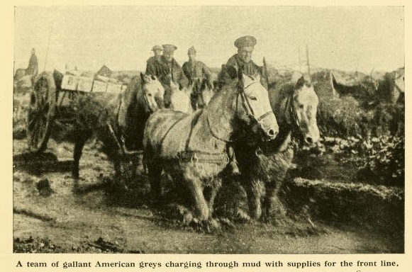 Again, horses like soldiers, are not all alike, to some the smell of powder is as the breath of life, the sound of gunfire sets them aquiver with excitement, while others at these things tremble like a leaf, but the majority are indifferent. Horses which a month or two ago were walking the streets of Liverpool, and would have become panic stricken at the sound of a heavy clap of thunder, no go about their work in the firing line quite indifferent to sudden explosions and the screeching of shells. Naturally, when these horses first approached the firing line they grew restless and whinnied with fright at the thunder of artillery, but in two or three days that restlessness wore away, and now they accept it all with a pacific calm.