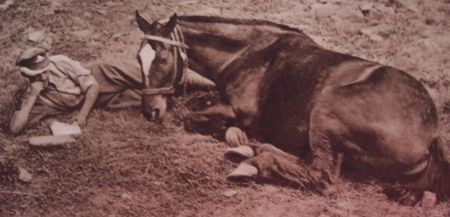 Then the war clouds gathered, and Army and remount officers scoured the country and removed from their old haunts all the four footed animals found to be in good fettle. Quickly led from the old stables or taken from the shafts of their familiar vehicles they soon found themselves, with many of their fellow creatures, trotting to the nearest railway station, where, locked in their boxes, they were transferred by rail to new scenes. They found their new masters more brisk, perhaps, in their movements, than their old, but, though handled with firmness, they were treated with kindness. Constant association soon used them to their new surroundings, and we find the veteran of the hunting field the mount of the officer or the cavalryman, and the former horse of the tradesman galloping, as to the manner born, in a gun team. Their subsequent history is beyond our men. We often wonder what the fate of our old friends will be. Whether, like many of their riders, they will die in the service of their country, or whether, war scarred, but still fit for action they will return to tread again along the highways and bye ways.